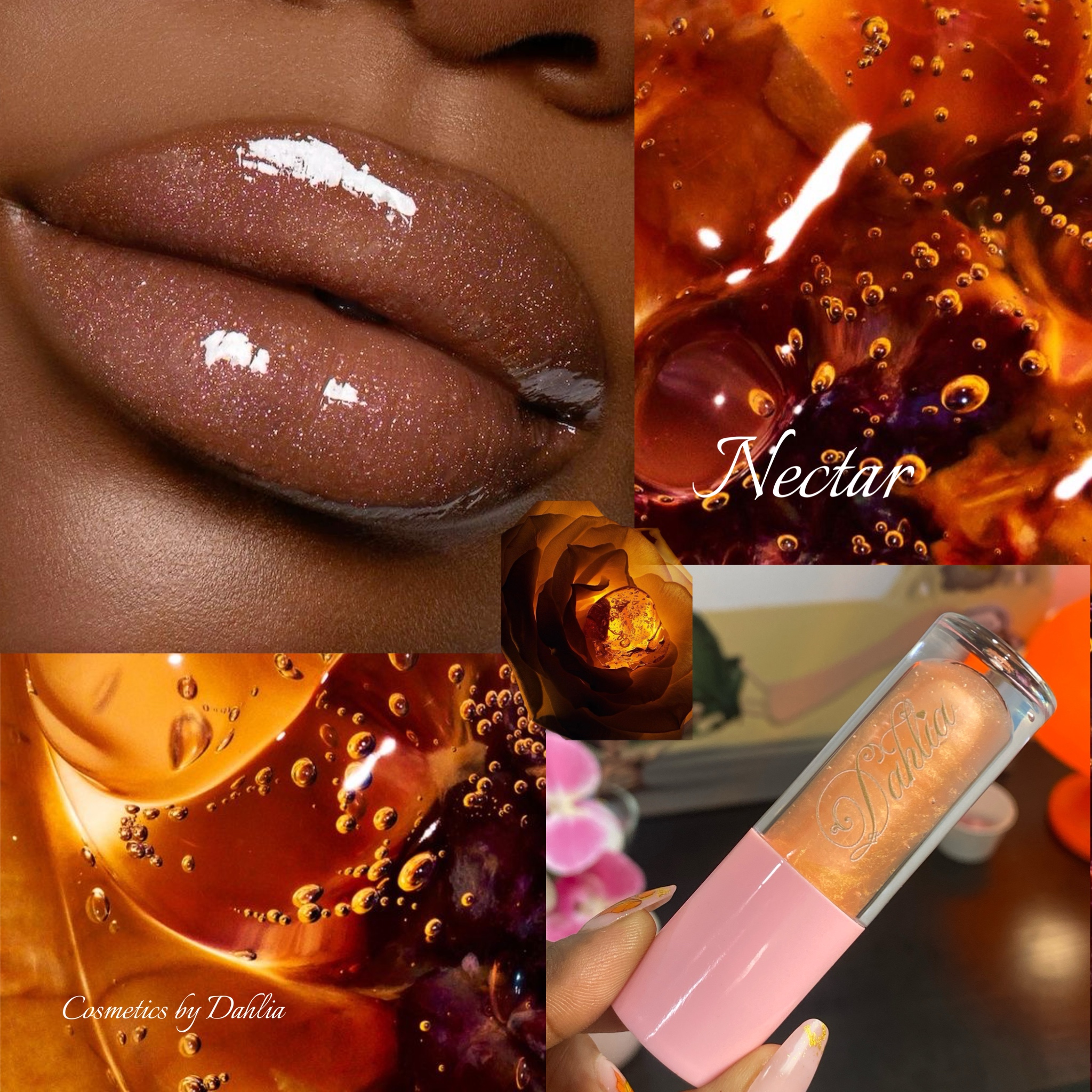 Golden and sweet just like its name. Nectar isn’t just a gloss, it’s a glow with a hint of actual sweetness. Perfect for warm looks, golden hour selfies, and anyone who loves a little shine that tastes as good as it looks✨